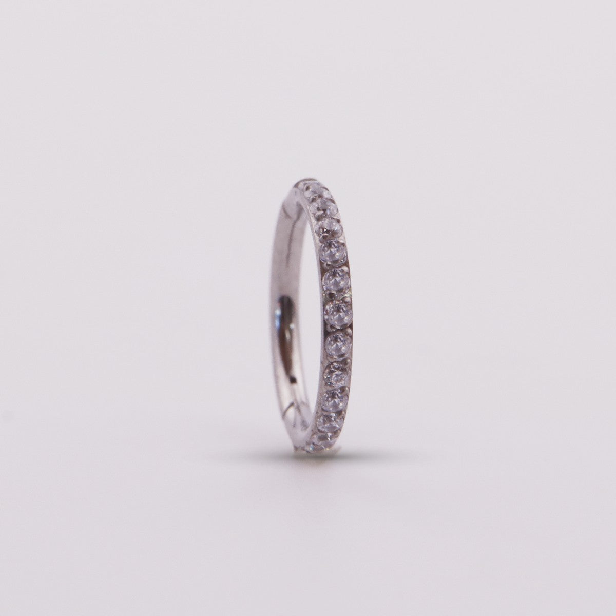 El Aro Clicker Zirconia Plateado en Titanio es una joya delicada y elegante, diseñada para aportar brillo sutil a cualquier ear look. Su diseño incorpora incrustaciones de zirconia que reflejan la luz con suavidad, logrando un acabado moderno y refinado. Fabricado en titanio hipoalergénico, es una pieza ligera, segura y cómoda para el uso diario.