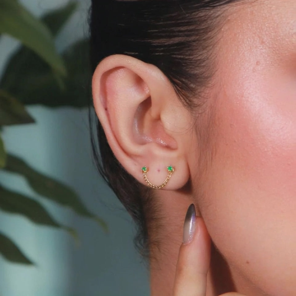 La Cadena Corta Cubana en Oro Italiano de Helix Body Jewelry es un conector minimalista diseñado para unir perforaciones de lóbulo y upper lobe con un equilibrio perfecto entre carácter y elegancia. Su longitud de 22 mm y su tejido cubano pulido aportan un brillo sutil y un movimiento delicado, ideal para ear looks limpios, modernos y bien definidos.