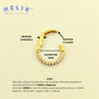 Para conservar tu joya en óptimas condiciones, límpiala regularmente con solución salina estéril. Se recomienda evitar el contacto prolongado con agua de piscina o mar para preservar el acabado de la pieza.